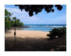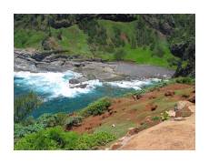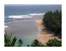 | Our first serious adventure after the conference ended was a hike along the Na Pali coast (on the north side of the island). We stopped in the morning at a supermarket, bought some sandwiches, then drove until the road ended at the beautiful Ke'e beach. Then, we started hiking the Kalalau Trail. | ||