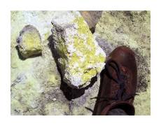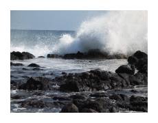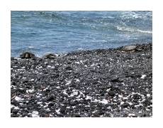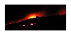 | A big part of the attraction was seeing hot, flowing lava. We decided to go out at twilight to see the lava glowing in the dark. It was a scrappy two mile hike to get out to where the lava hit the ocean. If we'd been there only two months earlier, it would have only been a couple hundred meters. | ||