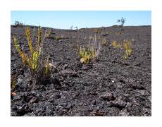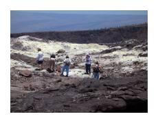 | While Kauai is the oldest of the Hawaiian islands, and has thus had the most time for lava to erode into soil, the Big Island is the newest, and tends to make you think you're on another planet. We dove right in, spending a couple days in Volcano and visiting Volcanoes National Park. We started off by hiking into the Kilauea Caldera. | ||