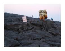| For our final adventure, we wanted to go to the top of Mauna Kea, where the Keck Observatory, among other expensive telescopes, is perched at 14,000 feet above sea level. Our little rental car wasn't going to make it up that high, although you could do it yourself if you had four-wheel drive. Instead, we shelled out for a tour company. Included was a box dinner at a former ranch that the tour company rents to let us eat dinner and acclimate to the altitude (roughly 7,000 feet). | ||