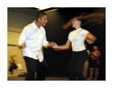 Houston has been hosting dance workshops for years, but we finally hosted our first Lindy exchange. Other photos will be online (and linked from here) shortly, but meanwhile, here's what I shot. On Saturday night, the back room was playing an old version Farenheit 451. The subtitles combined with the dancers lets me pretend to understand something about deconstruction and post-modernism. |