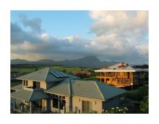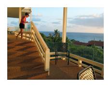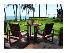 | After the conference was over, we spent the rest of our vacation staying in bed-and-breakfasts, using Hawaii's Best Bed & Breakfasts to help us find places to stay. Our favorite, of the whole vacation, was Hale Nuu in Poipu, on the southern coast of Kauai. Kauai is small enough that you can drive anywhere from anywhere else without taking too long. When we come back, this is the only place we're staying on Kauai. Nothing beats this view, whether you're inside or out on the lanai. | ||