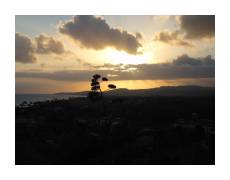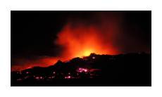 | A big part of the attraction was seeing hot, flowing lava. We decided to go out at twilight to see the lava glowing in the dark. It was a scrappy two mile hike to get out to where the lava hit the ocean. If we'd been there only two months earlier, it would have only been a couple hundred meters. | ||