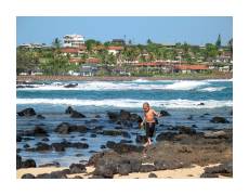 | Our first serious adventure after the conference ended was a hike along the Na Pali coast (on the north side of the island). We stopped in the morning at a supermarket, bought some sandwiches, then drove until the road ended at the beautiful Ke'e beach. Then, we started hiking the Kalalau Trail. | ||