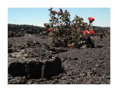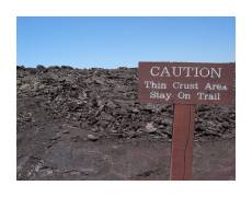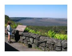 | While Kauai is the oldest of the Hawaiian islands, and has thus had the most time for lava to erode into soil, the Big Island is the newest, and tends to make you think you're on another planet. We dove right in, spending a couple days in Volcano and visiting Volcanoes National Park. We started off by hiking into the Kilauea Caldera. | ||