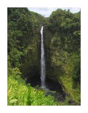 | Blistered and bruised up (but alive!) from the lava hiking, we decided to take it easy and visited Akaka Falls on the northeast side of the island. It's a short, paved walk from the parking lot to the view. | |