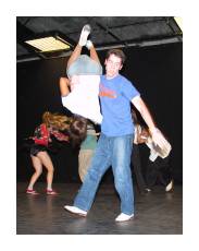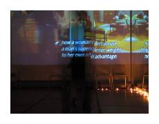 Houston has been hosting dance workshops for years, but we finally hosted our first Lindy exchange. Other photos will be online (and linked from here) shortly, but meanwhile, here's what I shot. On Saturday night, the back room was playing an old version Farenheit 451. The subtitles combined with the dancers lets me pretend to understand something about deconstruction and post-modernism. |