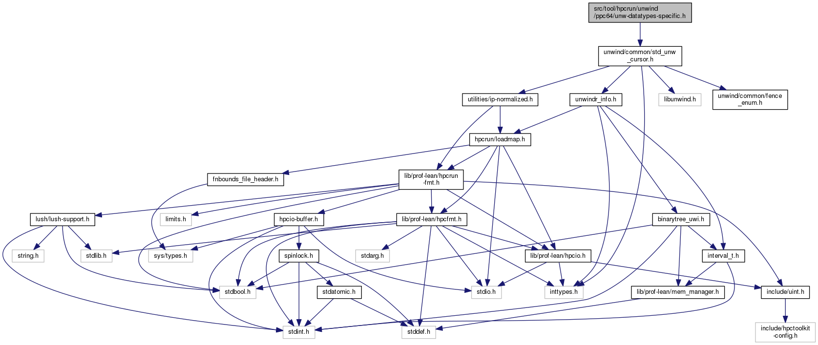 Include dependency graph for unw-datatypes-specific.h:
