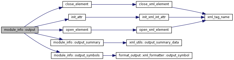 References close_element(), init_attr(), MODULE, NAME, NONE, open_element(), output_summary(), and output_symbols().