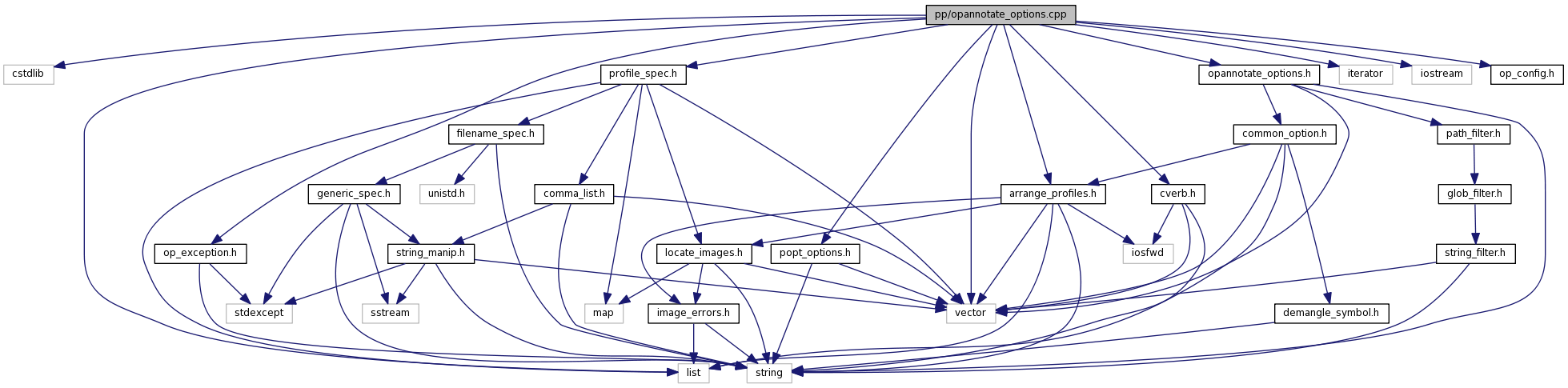 #include <cstdlib>#include <vector>#include <list>#include <iterator>#include <iostream>#include "op_config.h"#include "profile_spec.h"#include "arrange_profiles.h"#include "op_exception.h"#include "opannotate_options.h"#include "popt_options.h"#include "cverb.h"