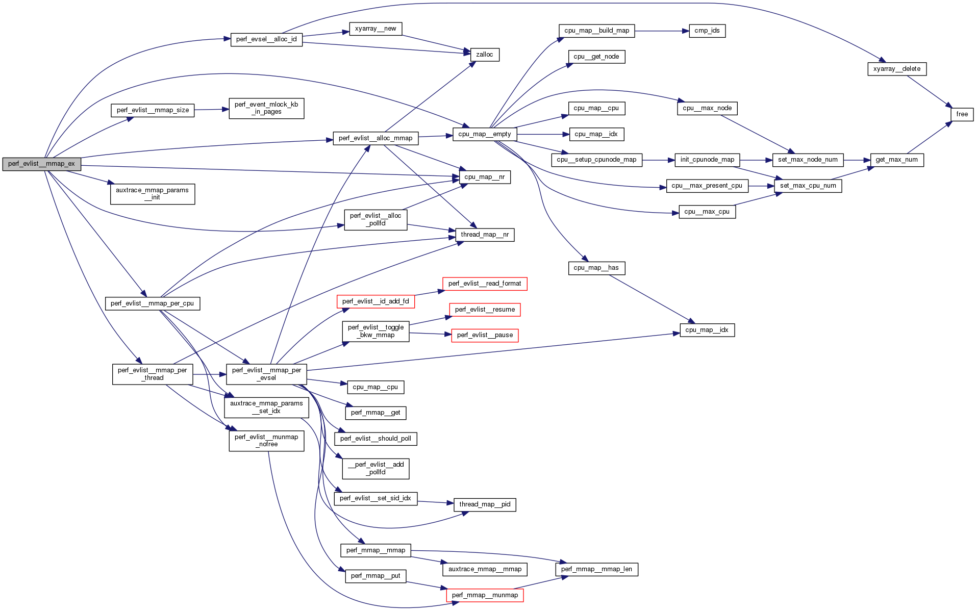| int | perf_evlist__mmap_ex (struct perf_evlist *evlist, unsigned int pages, unsigned int auxtrace_pages, bool auxtrace_overwrite) |