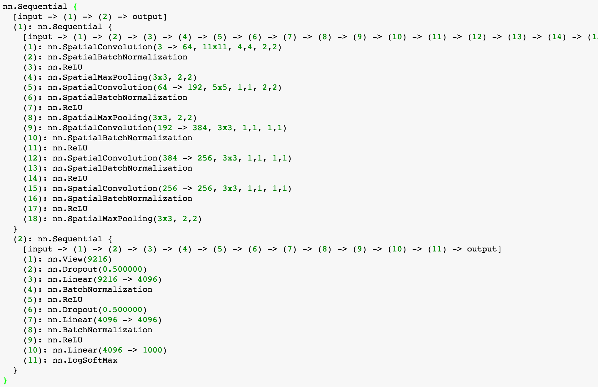 -- print(model) -- This shows detailed information about every layer in the model.
